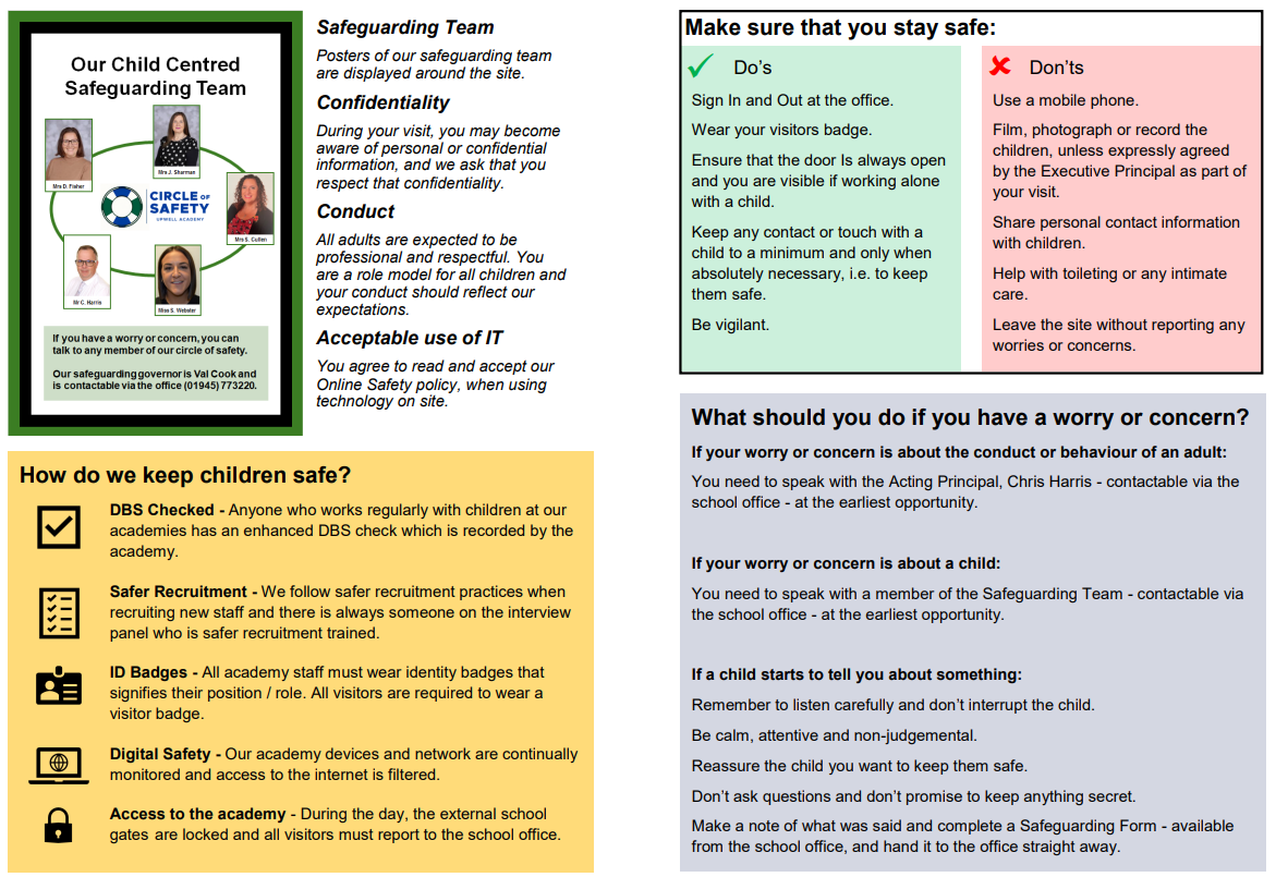 Upwell Academy is fully committed to safeguarding and promoting the safety and welfare of children at all times. We expect all staff, governors and volunteers to share this commitment and training. Monitoring and reporting procedures are in place to ensure this commitment is realised.