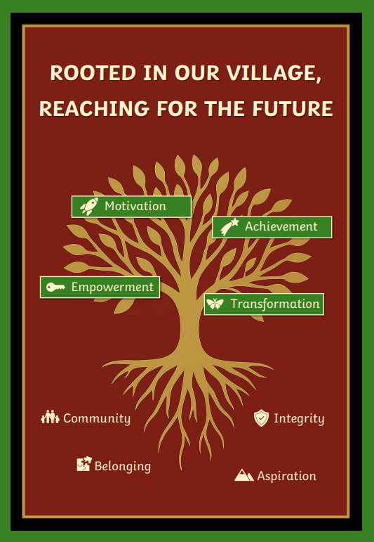 - Community: We celebrate our village heritage and foster strong partnerships with families and local organisations.
