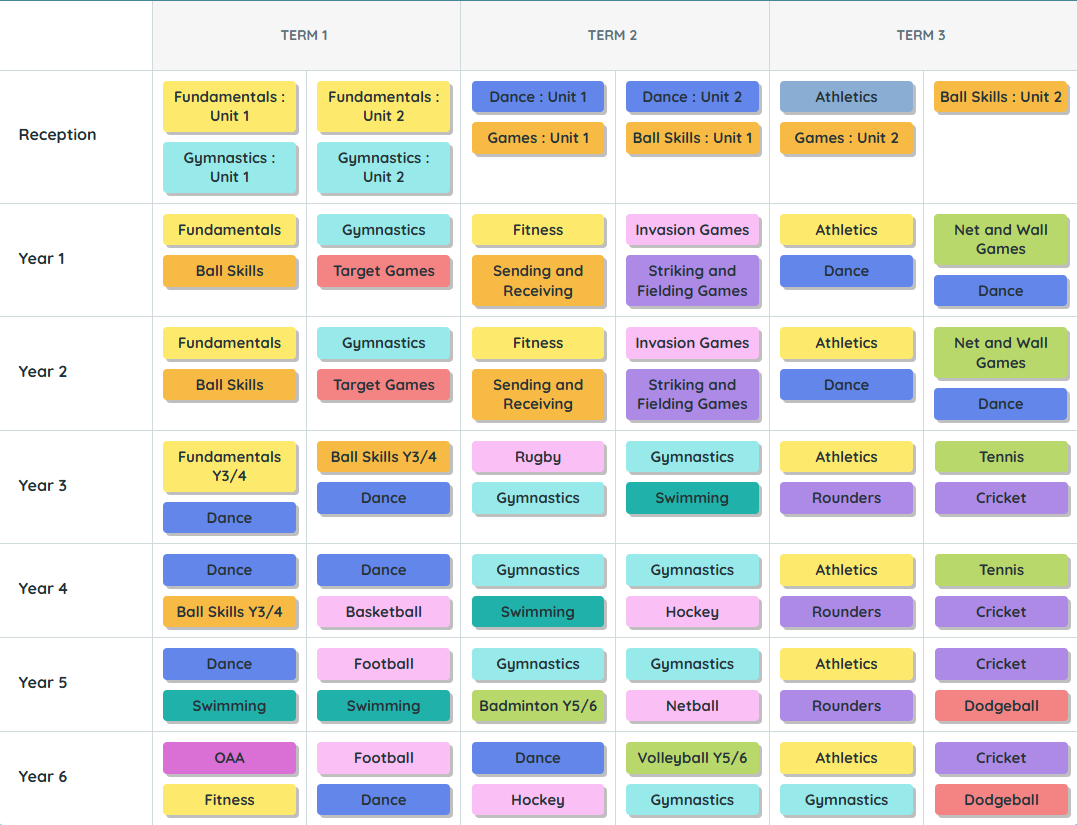 Children are required to come to school in full PE kit for their PE days. These will be shared at the start of the new half term by class teachers.